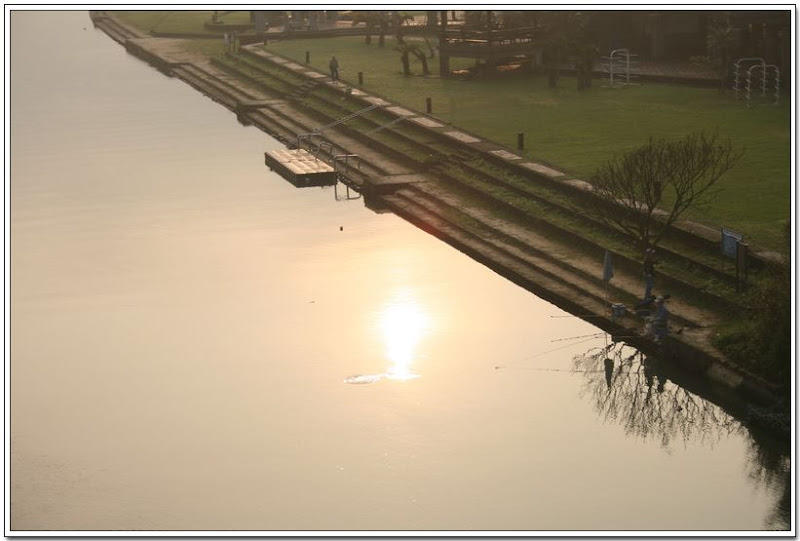 形成內河、外海的雙重景觀,彎月型拱橋連結兩處,內河河面寬廣、水流平穩,